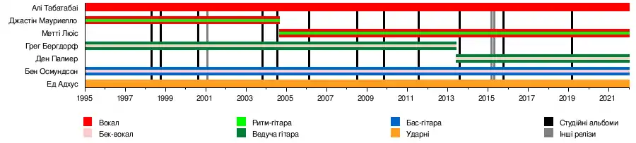 - Бен Осмундсон (Ben Osmundson): бас гітара/бек-вокал (1996 — теперішній час)